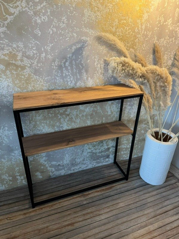 MESA RECIBIDORA 2 ESTANTES ESTILO INDUSTRIAL HIERRO Y MADERA