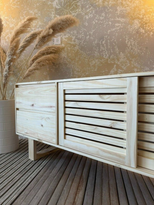 RACK TV PARIS EN PINO MACIZO 1RA CALIDAD PREMIUM